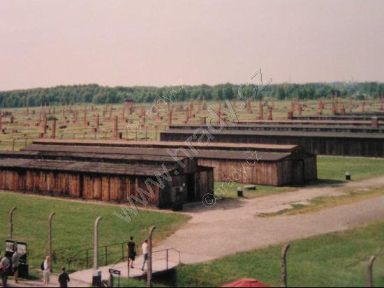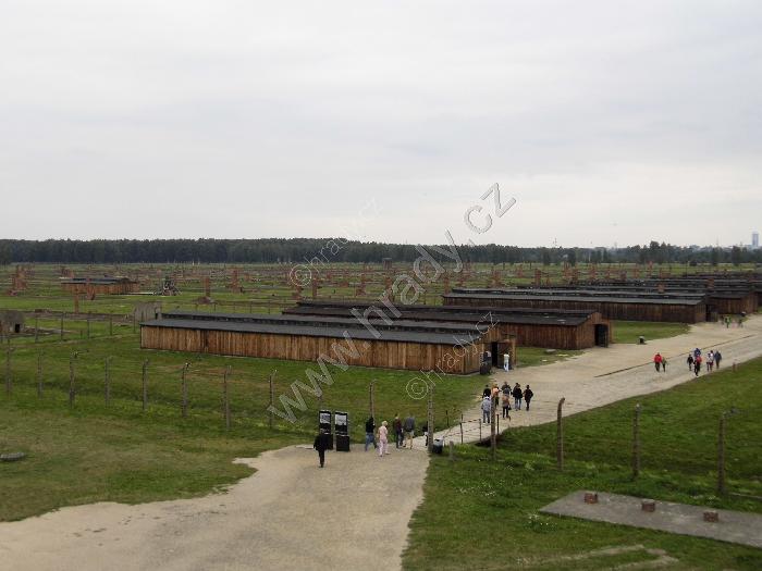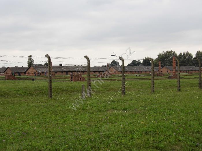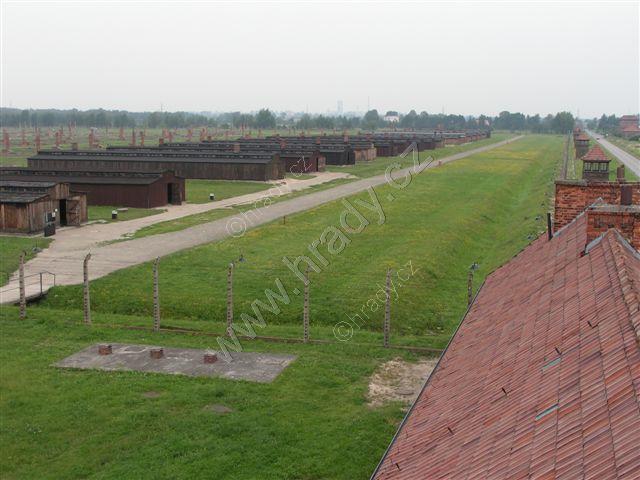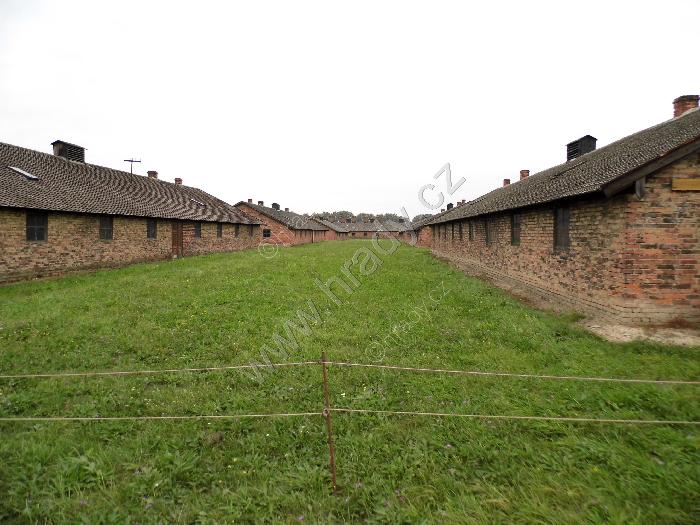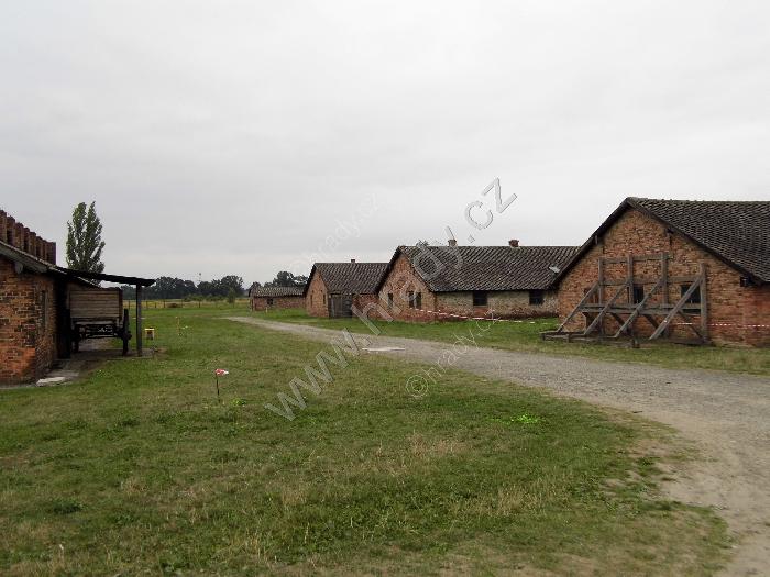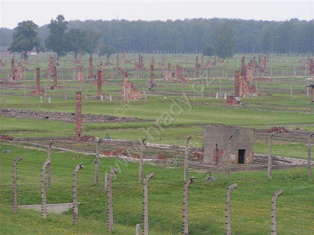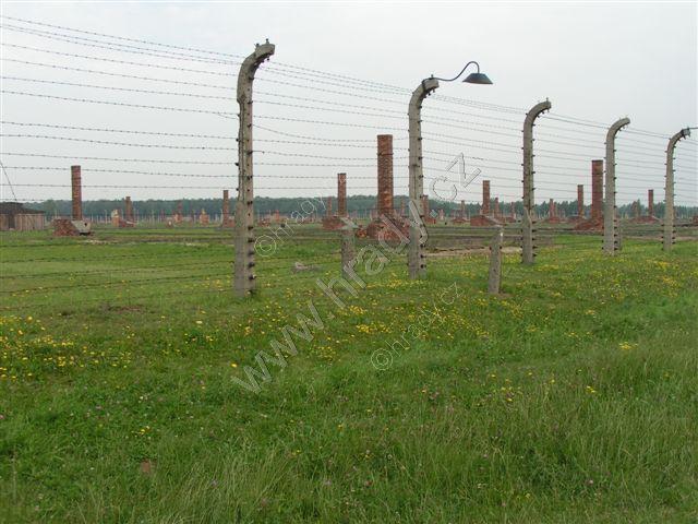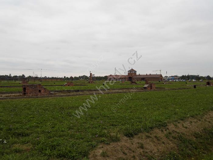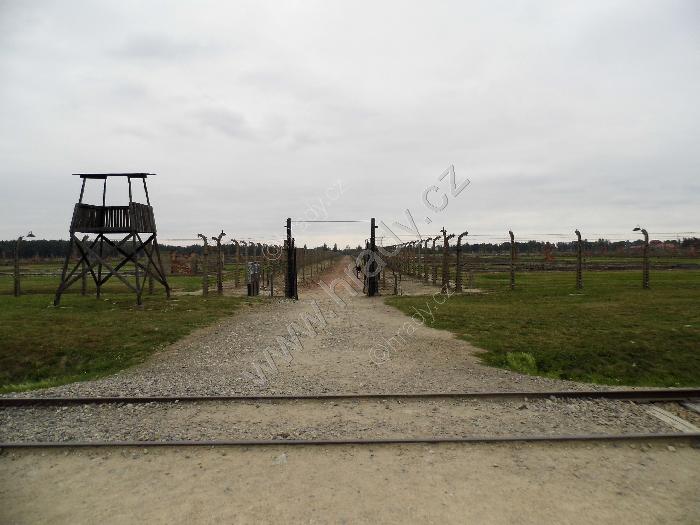 Brána mezi mužskou a maďarskou částí tábora. Auschwitz II Birkenau