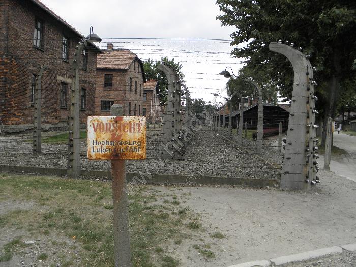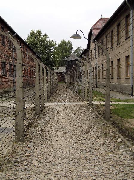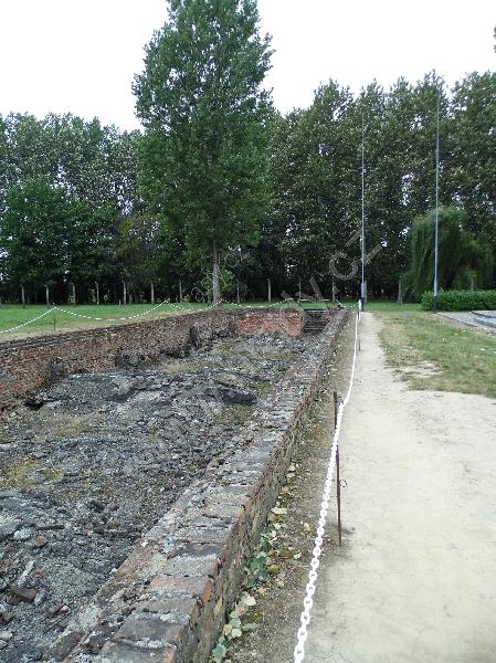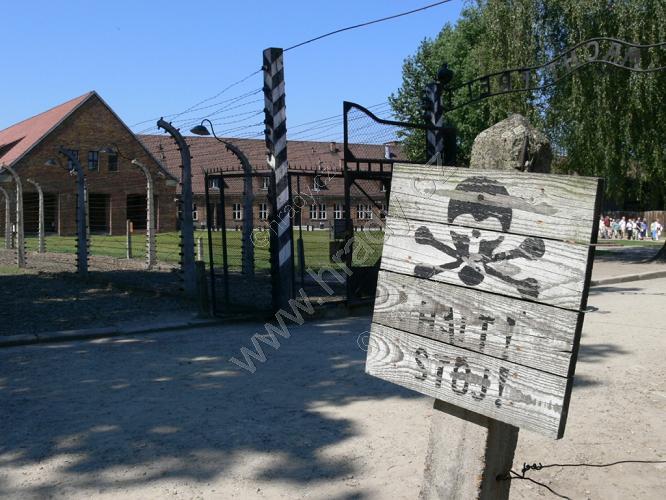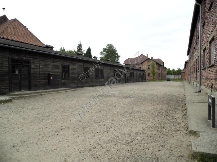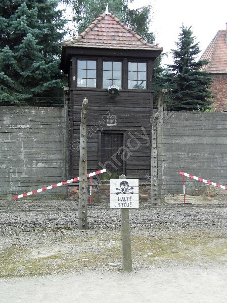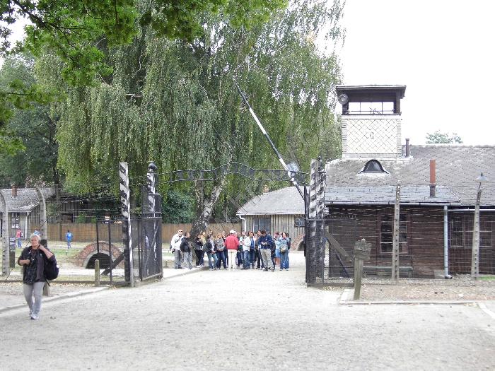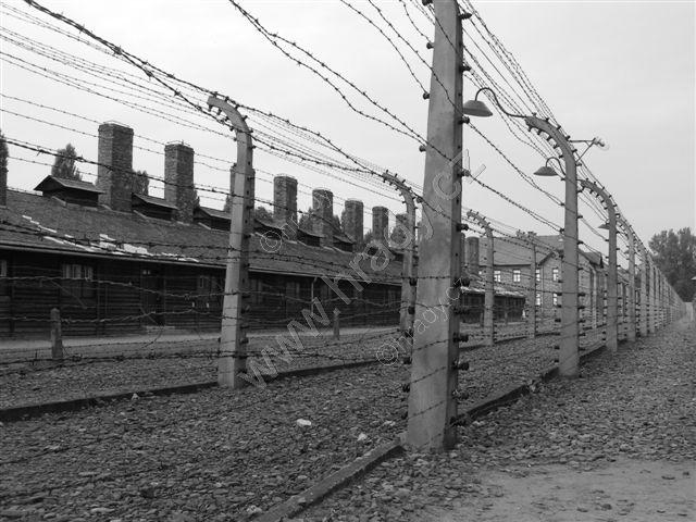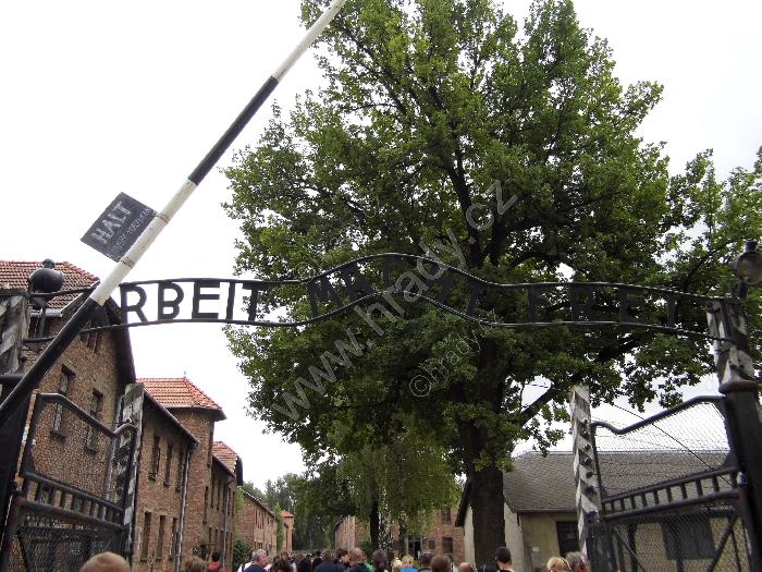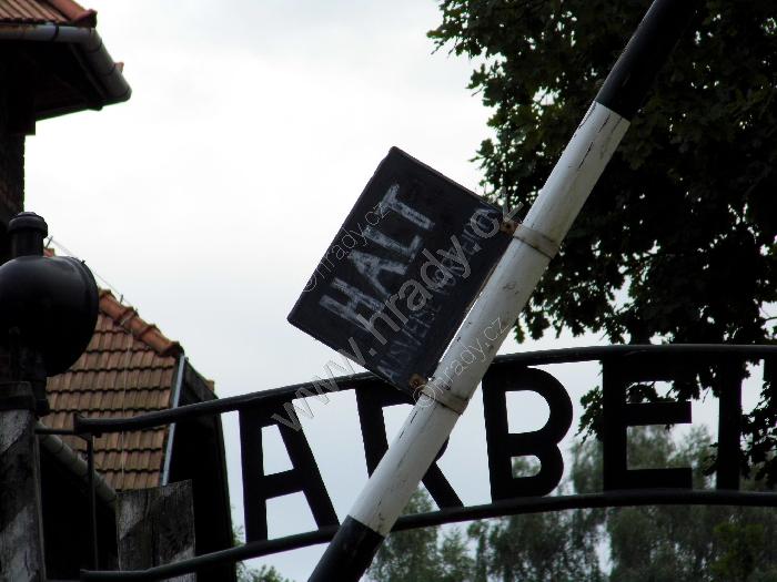 Brána mezi mužskou a maďarskou částí tábora. Auschwitz II Birkenau