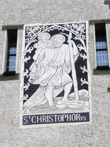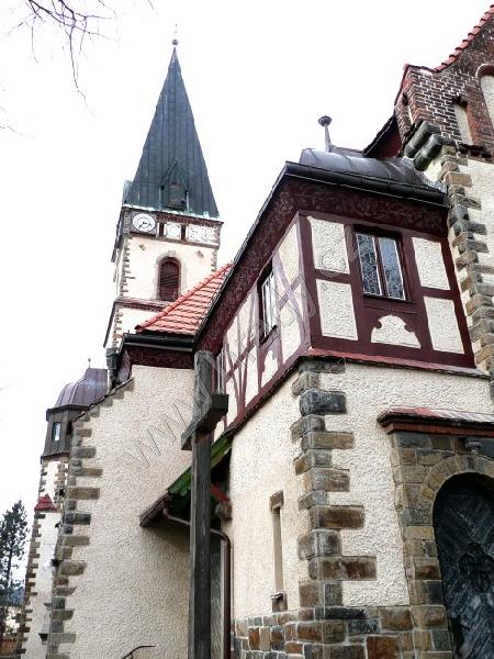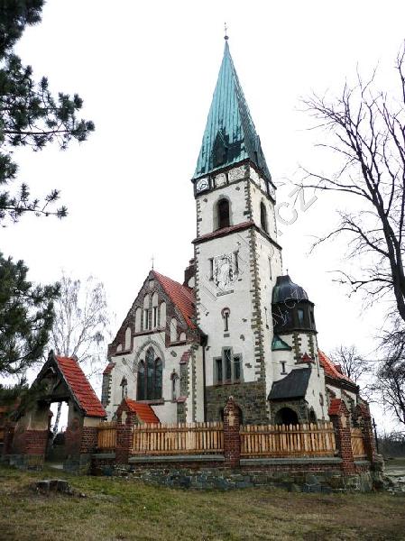 erb a heslo rodu Razumovských ve štítě nad vstupem do kostela