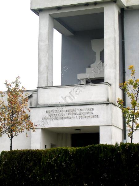 Hlavní průčelí před bohoslužebným prostorem.