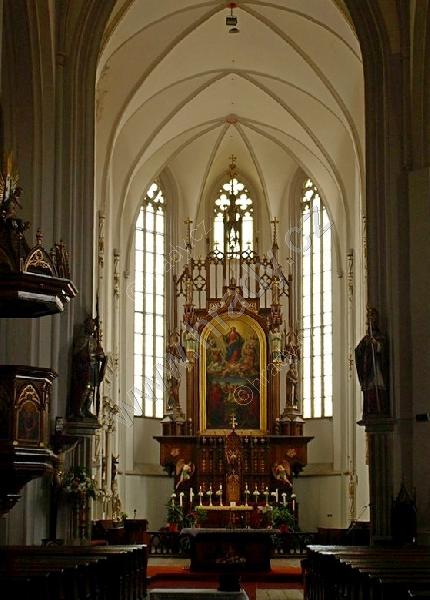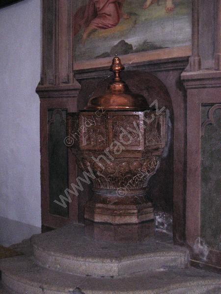 Probošta J. Pozziho z roku 1640, proveden v pozdně gotické formě z červeného mramoru.