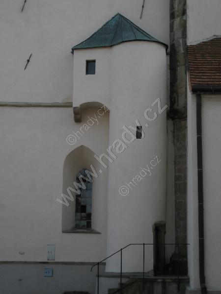 Razítko dostanete po výstupu velmi úzkého schodiště k pokladně na věž.