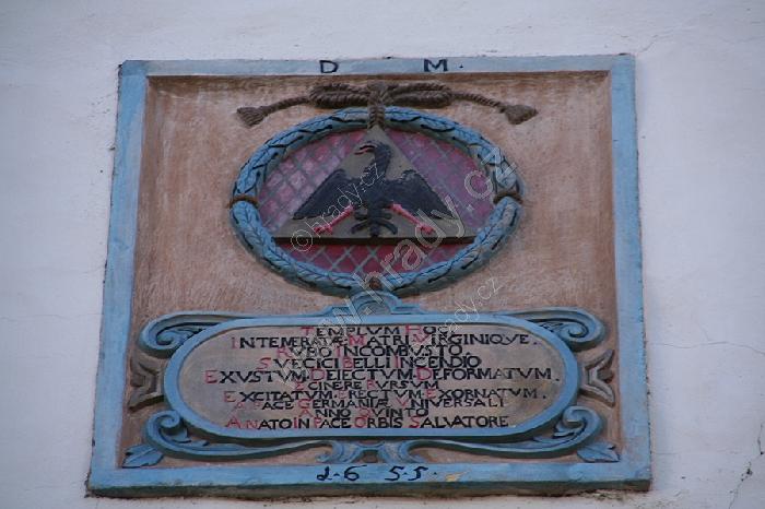 Pamětní deska na ukončení třicetileté války na západním průčelí