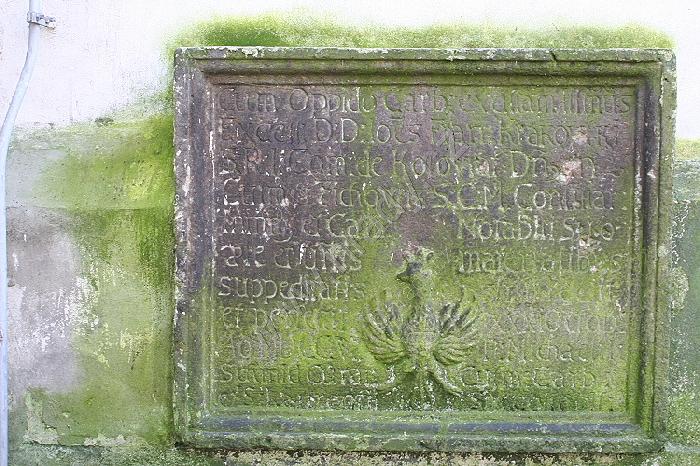 Základní kámen s kolovratskou orlicí na severním boku věže