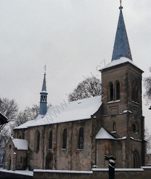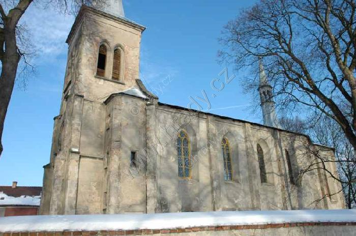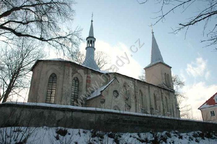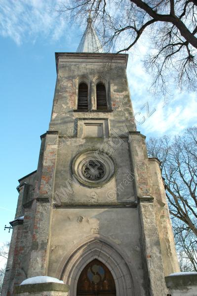 Pohled na kostel ze silnice vedoucí na Mnichovo Hradiště