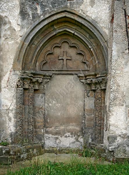 bohatě profilovaný a zdobený portál v severní stěně lodi