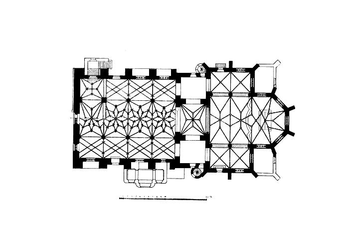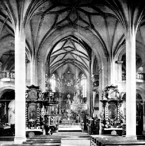 pohled z kruchty do trojlodí od jihovýchodu před novogotickou přestavbou