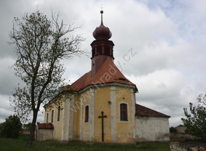 Kostel a zřícenina márnice (?) od jihovýchodu