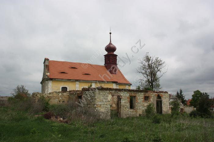 Kostel a zřícenina márnice (?) od jihu