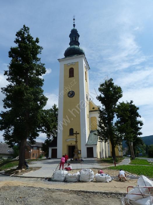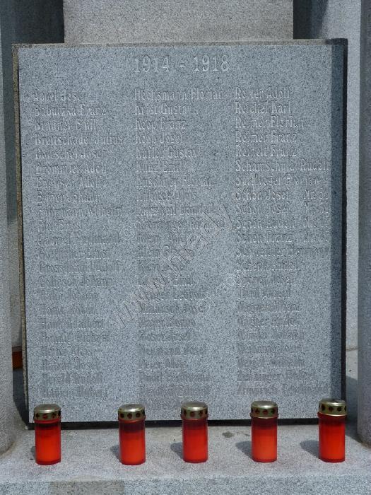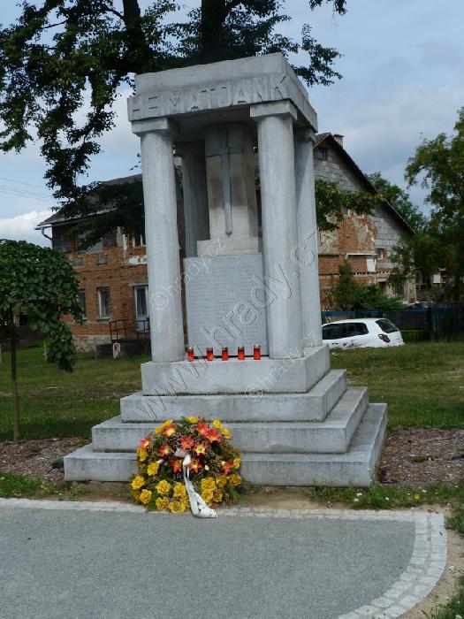 Pomník občanům Českého Malína za kostelem v parku - památník z roku 1947 připomínající umučení občanů Českého Malína na Volyni v roce 1943