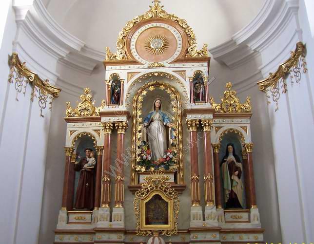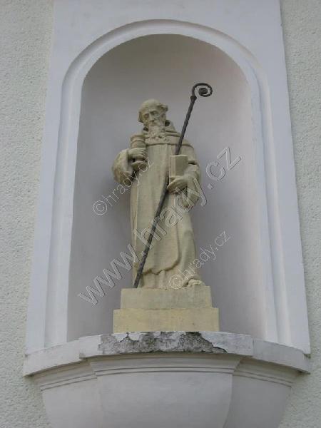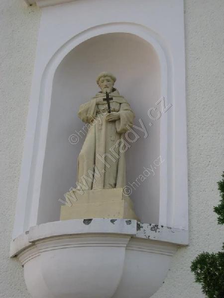 Tzv. svatá zahrádka u kostela. Stojí tu socha sv. Panny Marie Bolestné a socha papeže Jana Pavla II.