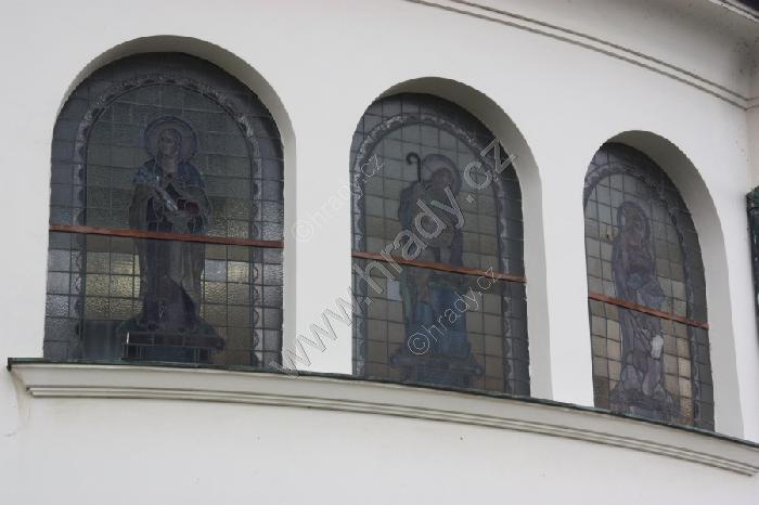 Vitraje v oknech jižní stěny