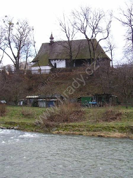 Pohled na kostelík ze břehu Rožnovské Bečvy