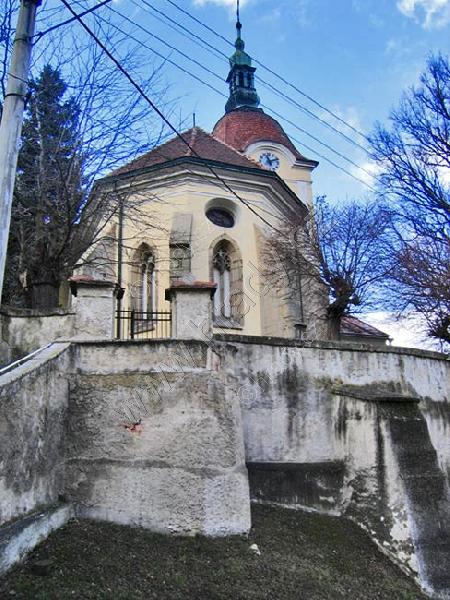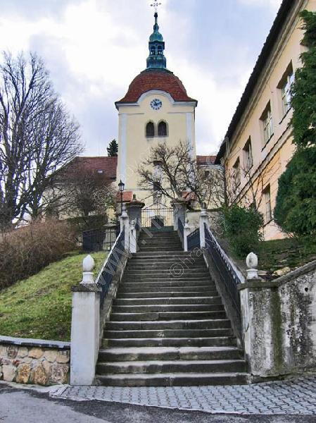 Hlavní přístupové schodiště ke kostelu z centra městečka