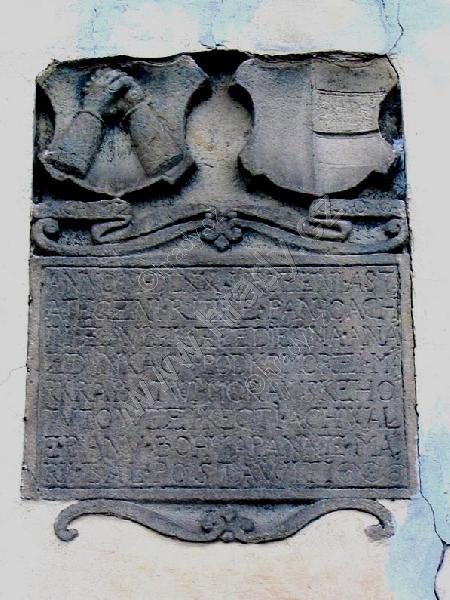 Kamenný erb Zoubků ze Zličína nad bočním vchodem