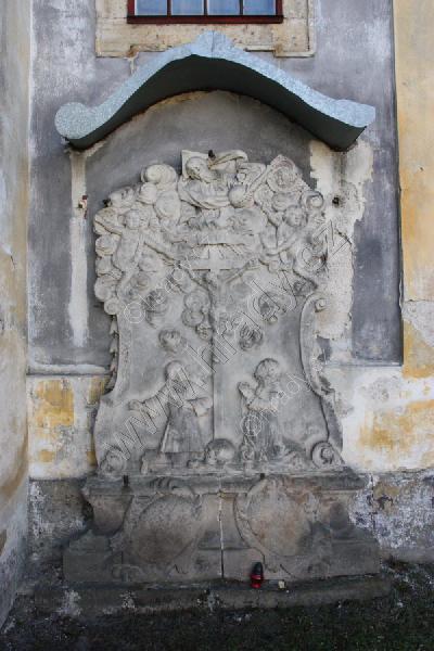 Epitaf zakladatelů kostela na východní stěně presbytáře