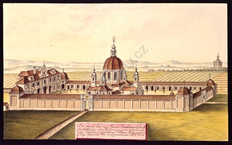 Kostel Panny Marie Vítězné na Bílé hoře na vedutě I.A.Venuta z r. 1813
