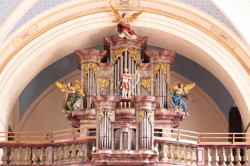 Dvoumanuálový mechanický zásuvkový nástroj postavil Johann Antonín Barth v roce 1829 z Dolní Olešnice.
