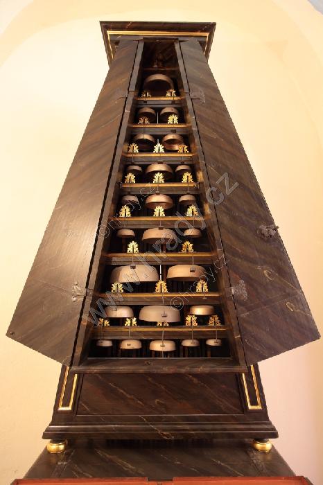 Nástroj je vestavěn do dvou manuálových skříní, v hlavní skříni je umístěn hlavní stroj s pedálem a v zábradlí kůru je umístěn II. manuál. Varhanní skříň je opatřena nepůvodním nátěrem, figurální výzdobu tvoří sochy Davida s harfou, anděla s harfou a anděla s houslemi. Vzduchovou soustavu tvoří trojice klínových měchů, umístěných nad sebou ve vedlejší místnosti. Tato soustava byla v roce 1955 doplněna hlučným a málo výkonným kovářským ventilátorem. Nástroj je silně napadený červotočem, ale je doposud funkční. Výška ladění je 462 Hz. / 22° C.