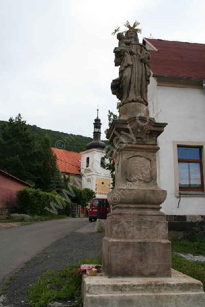 Socha Immaculaty z roku 1785, kostel v pozadí