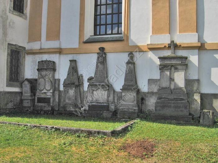 Náhrobníky u zdi kostela