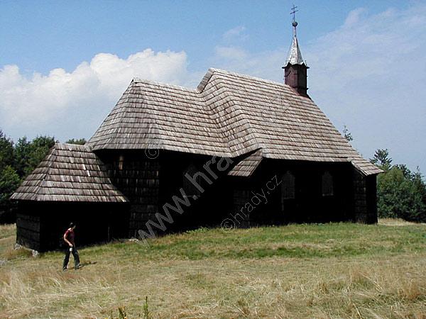 severní vstupní průčelí kostelíka sv. Antonína na Prašivé