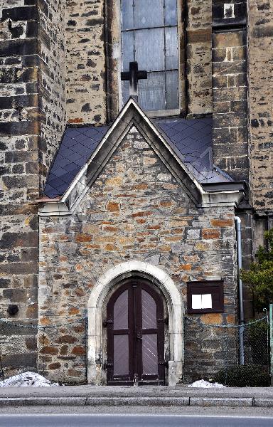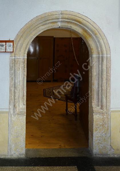 Zazděný portál kazatelny, směřující původně do prostoru kostelní lodi.