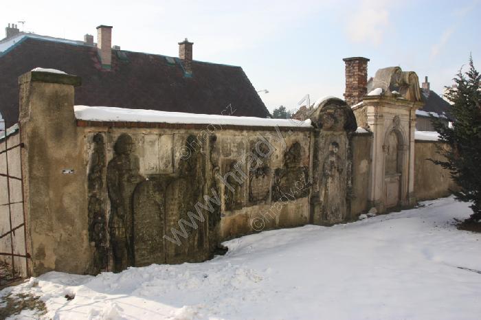 Renesanční náhrobníky v jižní zdi bývalého hřbitova