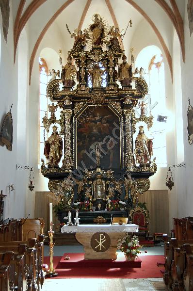 Ranně barokní oltář pocházející z roku 1663 byl v letech 2003 – 2006 zrestaurován a dne 27.8. 2006 znovu vysvěcen. Na centrální části hlavního oltáře se nachází obraz Nanebevzetí Panny Marie. Po stranách obrazu se nacházejí sochy sv. Víta a sv. Václava. Na nástavci uprostřed se nachází socha sv. Bartoloměje a po stranách sochy sv. Vojtěcha a sv. Prokopa. Oltář patří k významným památkám kulturního dědictví města.