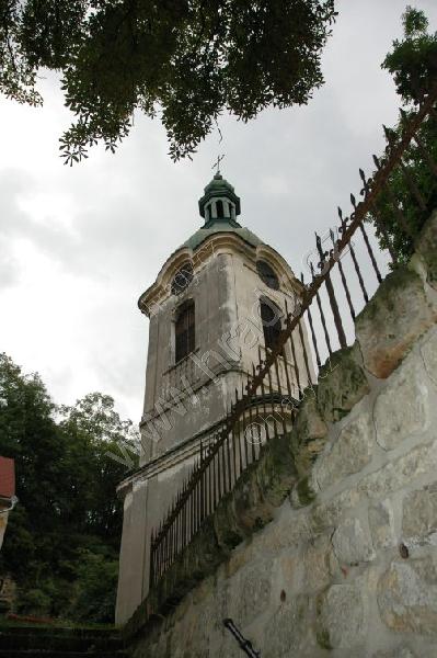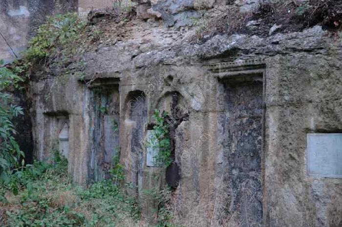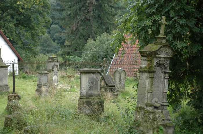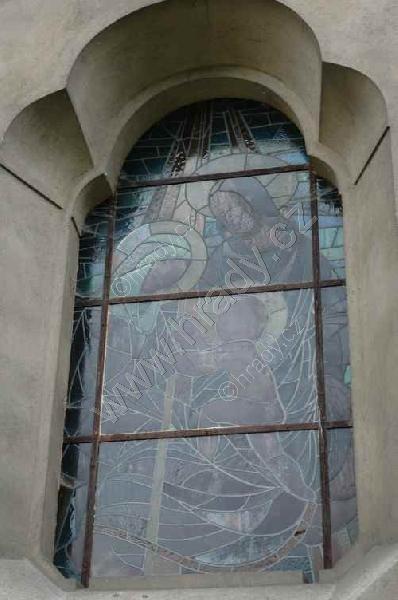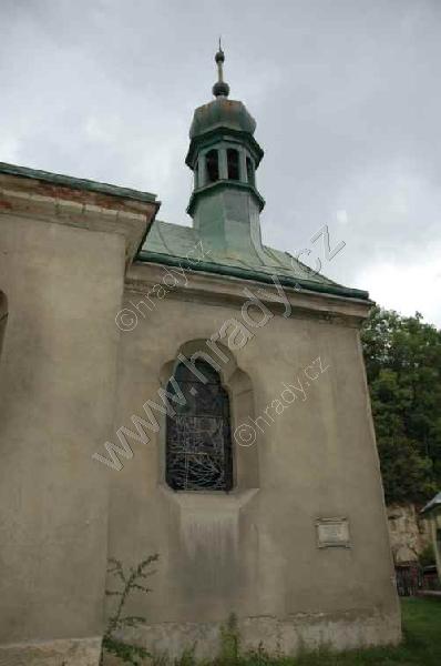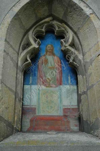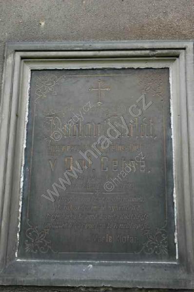 Jeden z náhrobních kamenů umístěných ve zdech kostela