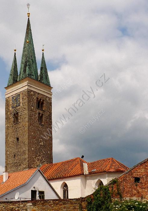 Věž kostela z Palackého ulice (od východu)