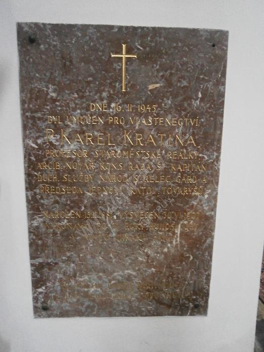 Pamětní deska P. Karla Kratiny, umučeného nacisty 15.II.1945