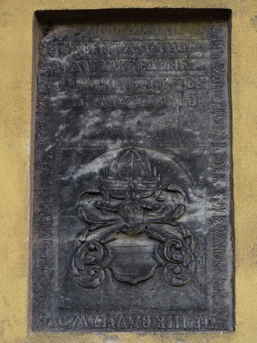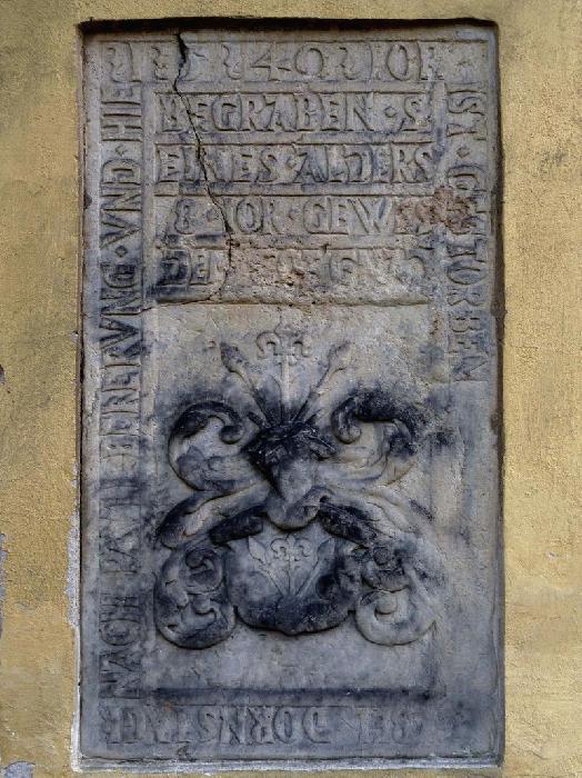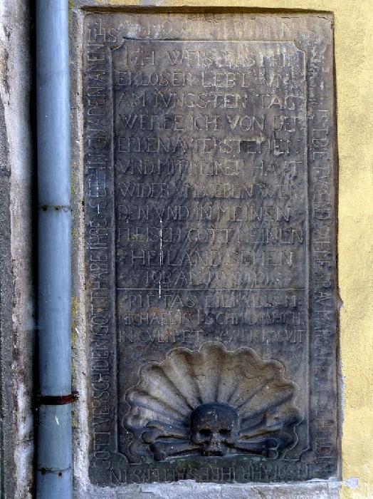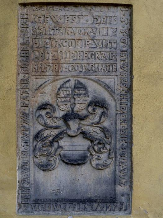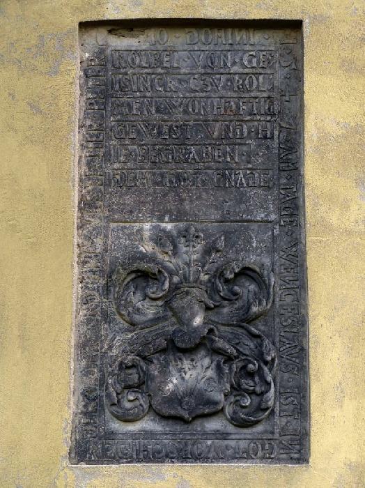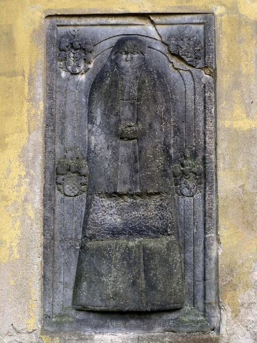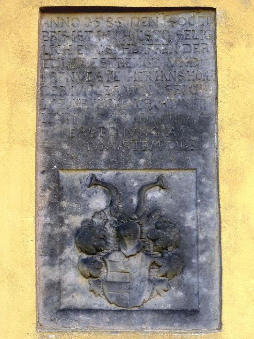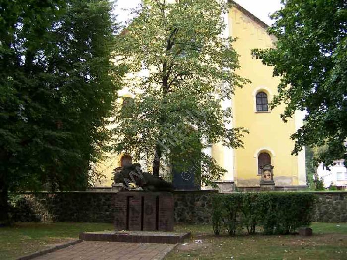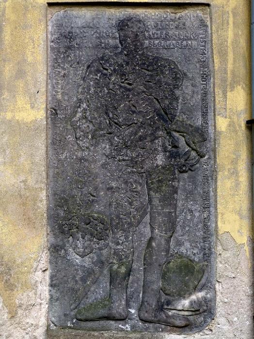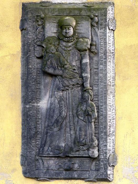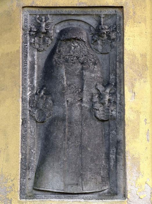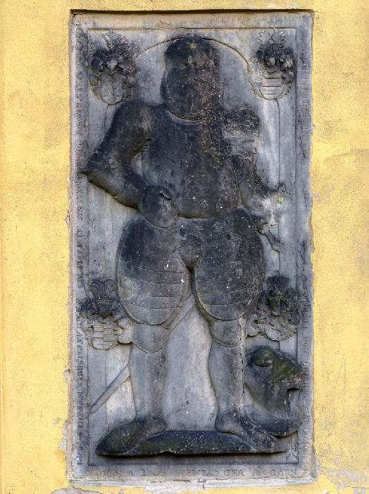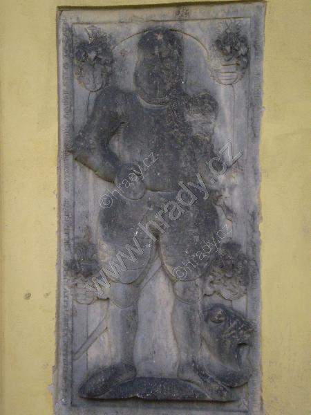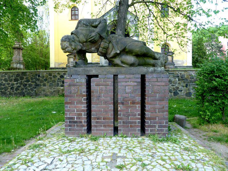 Pod vstupním schodištěm je umístěna socha zraněného vojáka na paměť obětem první světové války. Postaven byl díky sbírce matek a vdov vojáků v roce 1935 pod patronací komandanta Franze Kölera a slavnostně odhalen roku 1936. Socha vojáka je ze sochařské dílny F. Watzka v Teplicích.