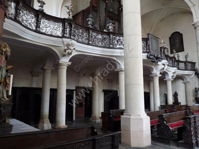 pohled od vchodu na vrcholně barokní kruchtu (Santini?).