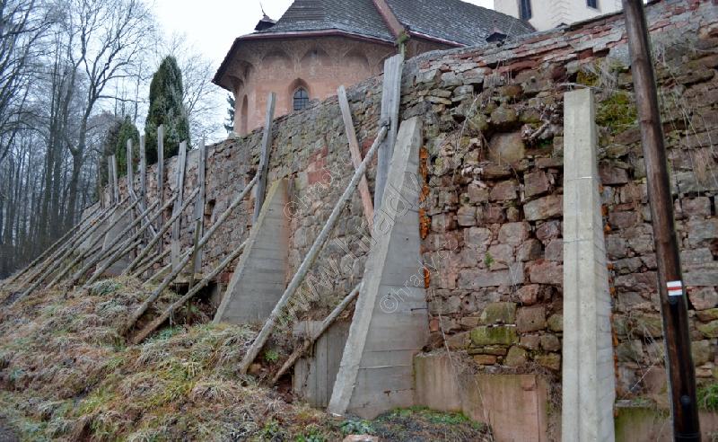 Zadní strana, zřejmě původního vstupu do areálu.