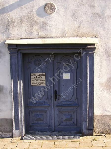 dřevěná vrata bočního vchodu do kostela