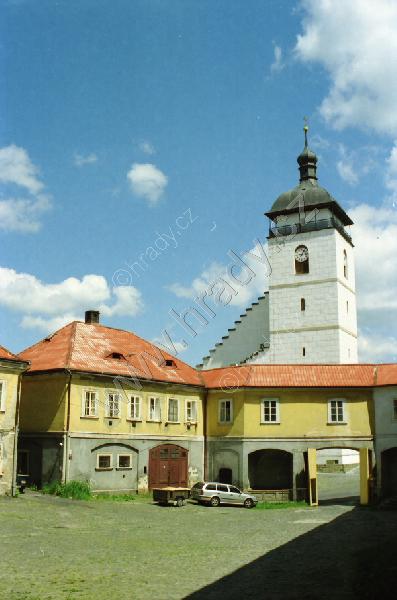 Kostelní věž ze zámeckého nádvoří