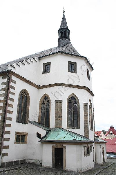 Závěr kostela se severní barokní sakristií