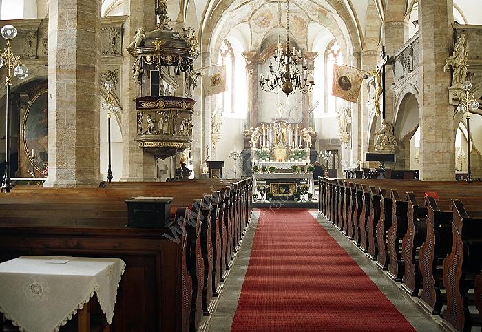 Průhled trojlodím k presbytáři