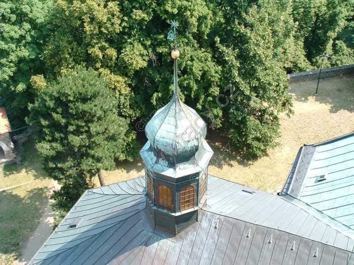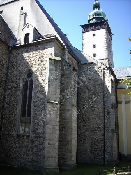 v popředí zvonová věž,za ní věž strážní - vyhlídková.