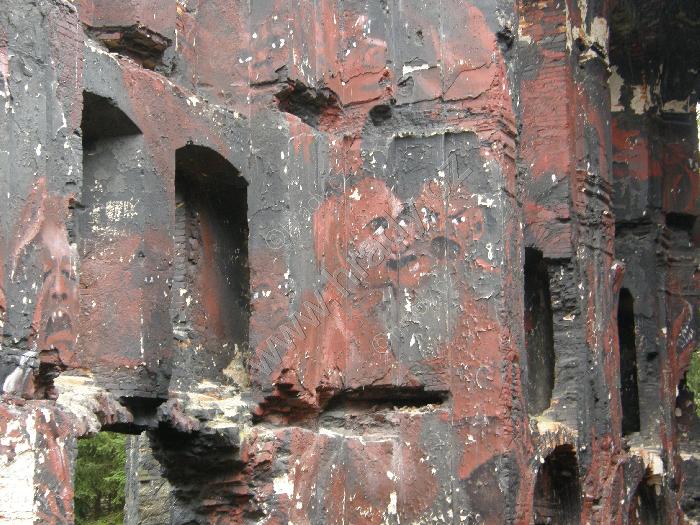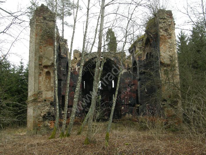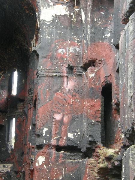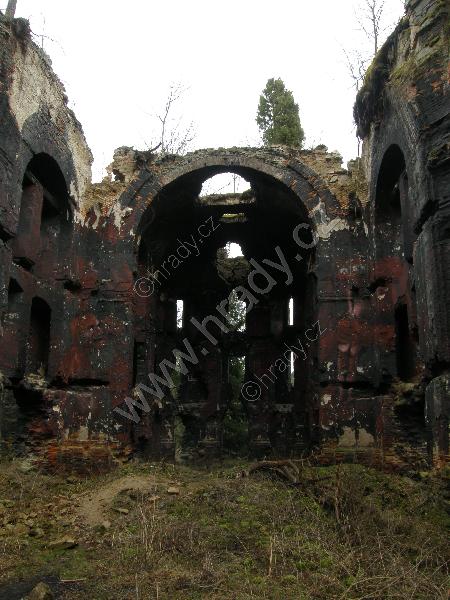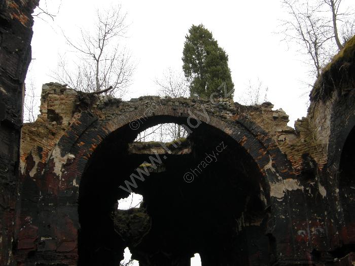 Interiér zříceniny kostela. Zde bylo filmové peklo.
