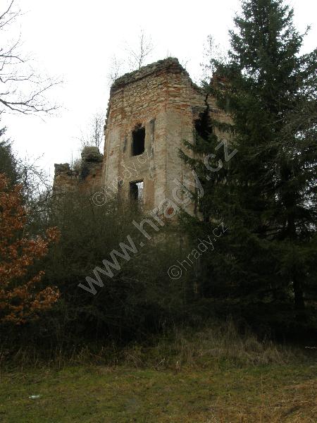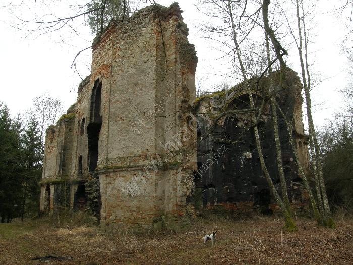 Boční pohled na mohutné zdi bývalého kostela svatého Jana.