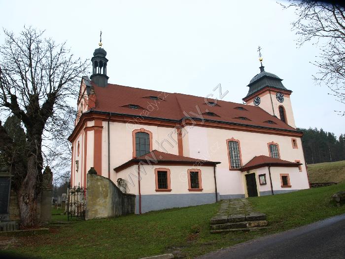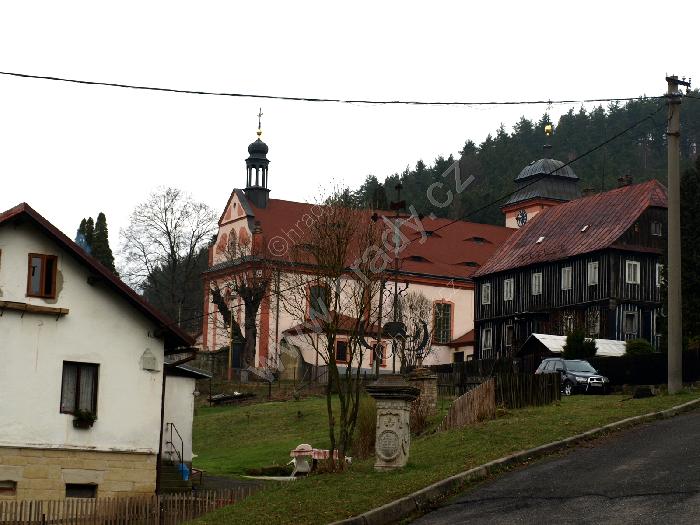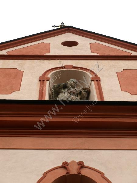 nika se sochou sv. Jana Nepomuckého v průčelí kostela