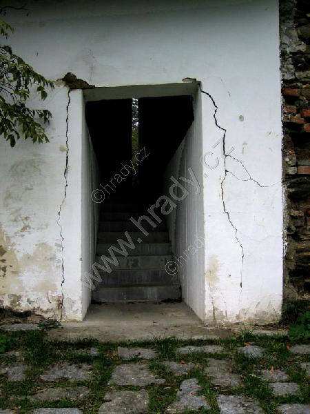 Zbytek schodiště, vedoucího z bývalé vsi Karlovec ke kostelu. Vesnice je v současnosti na dně přehrady.
