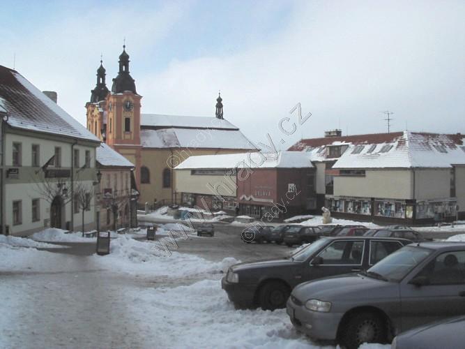 Náměstí s chrámem sv. Jana. V pozadí děkanství a farní kostel sv. Jakuba.