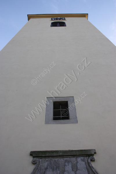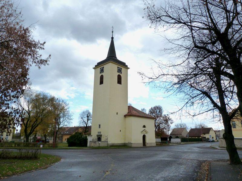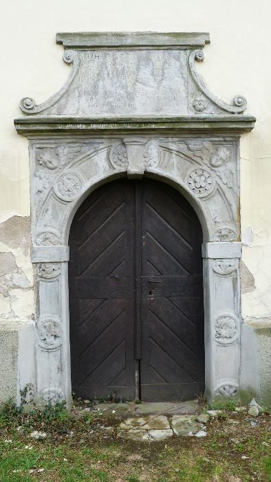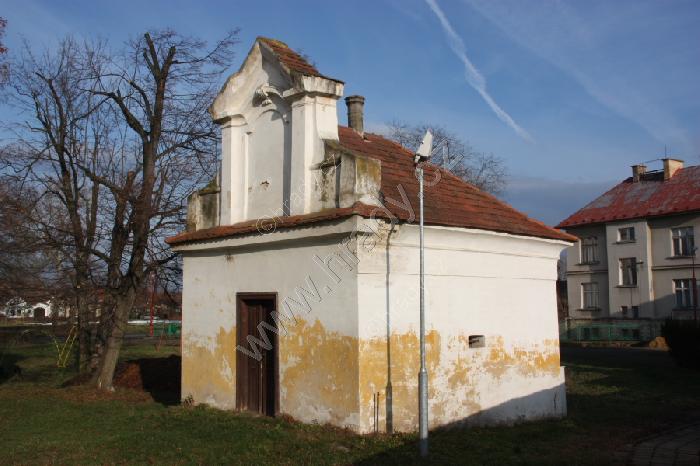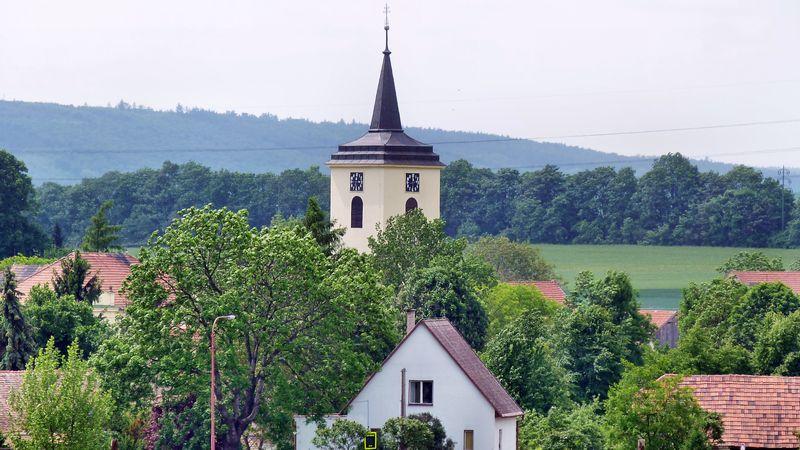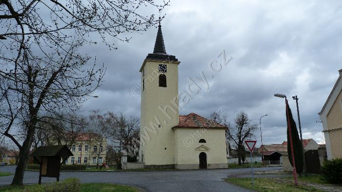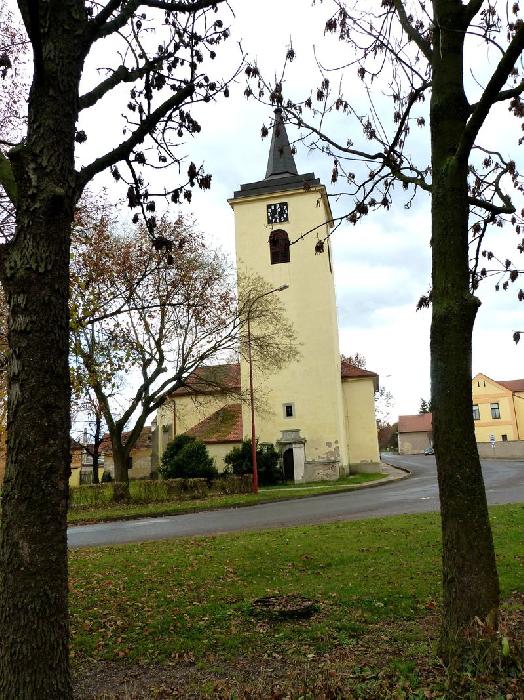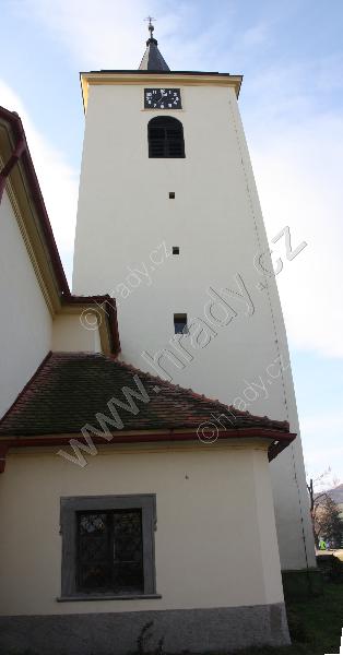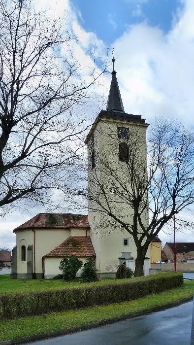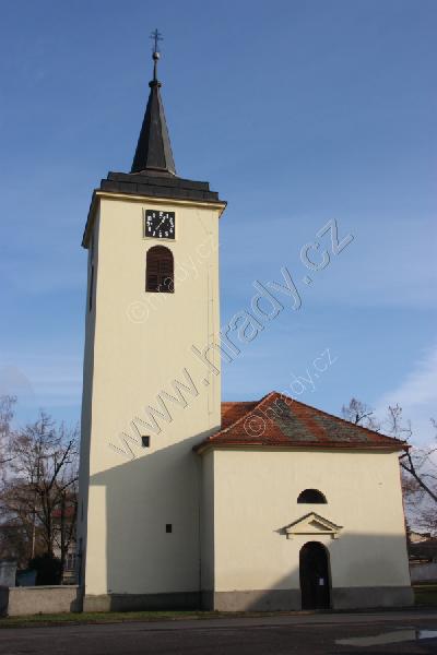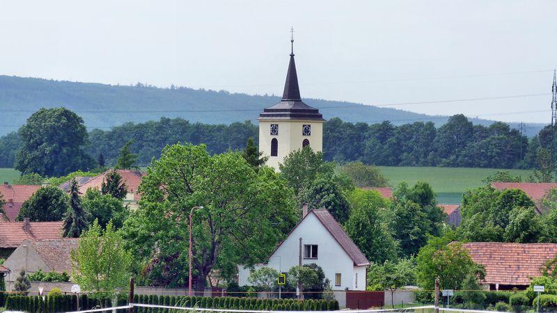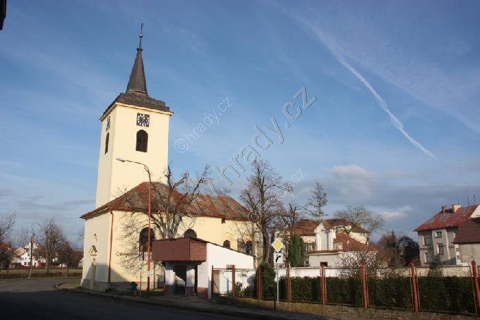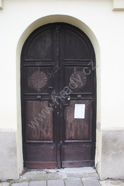 Kostel a márnice od východu, vpravo v pozadí Hazmburk