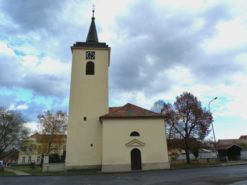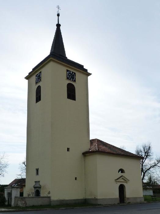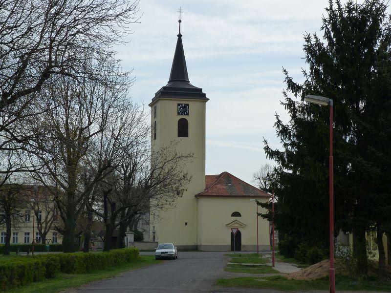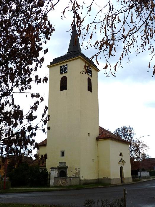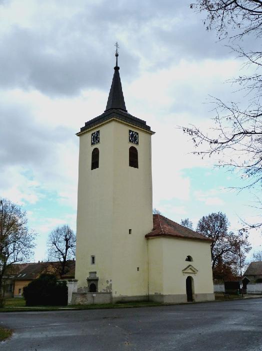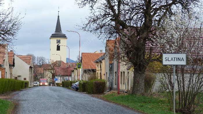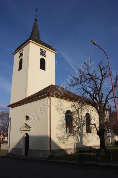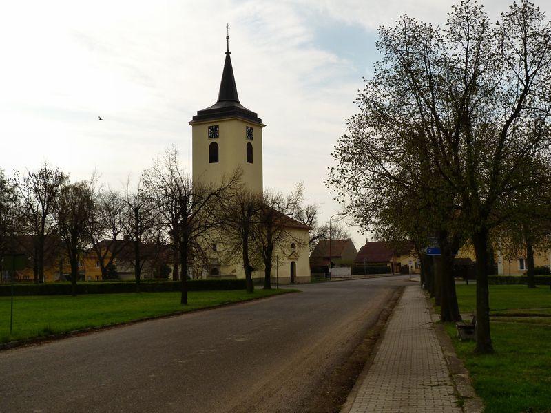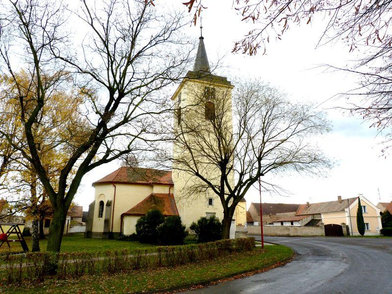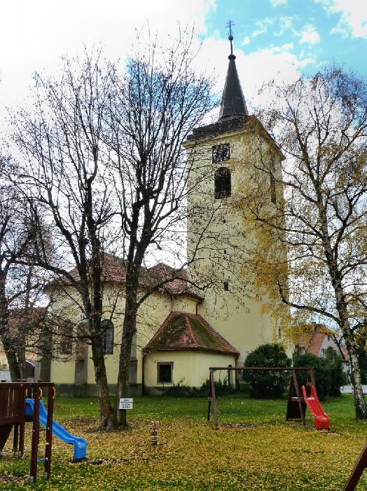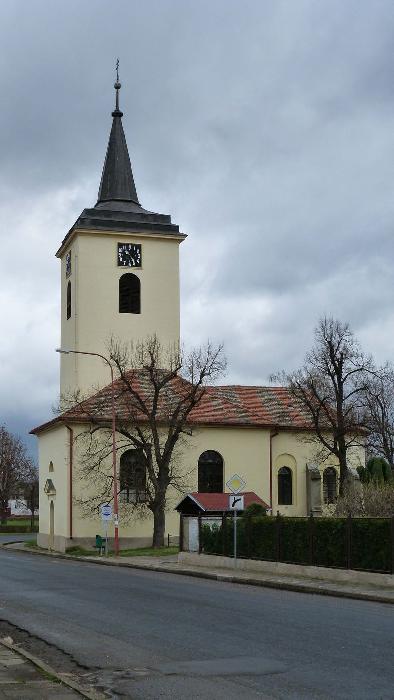 Kostel a márnice od východu, vpravo v pozadí Hazmburk