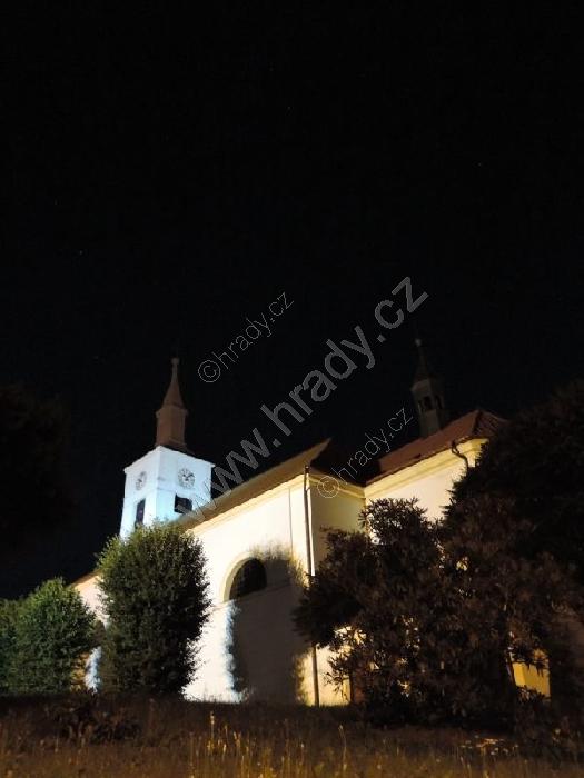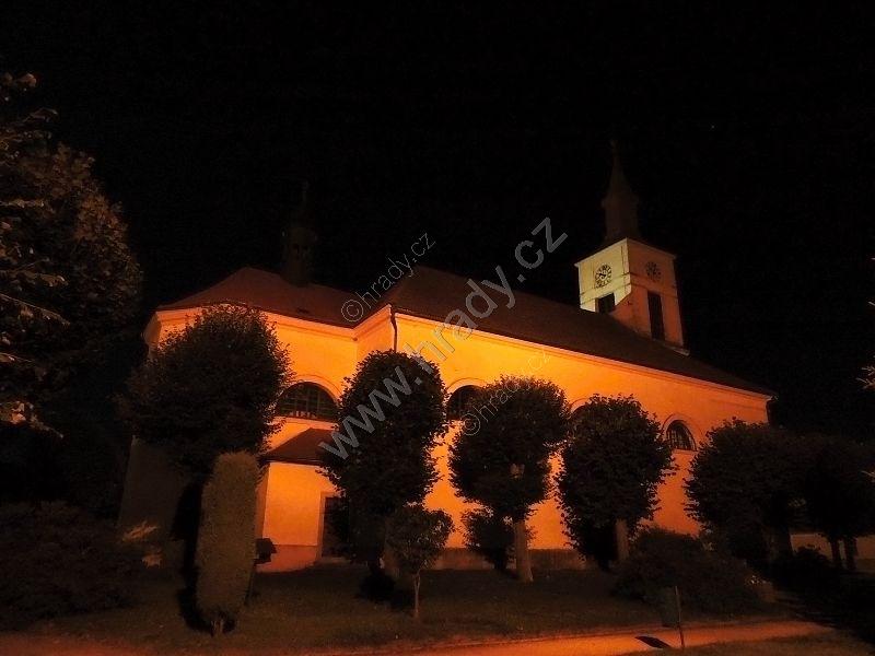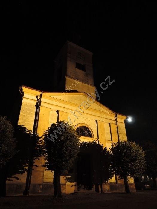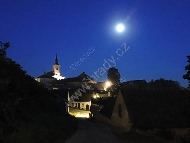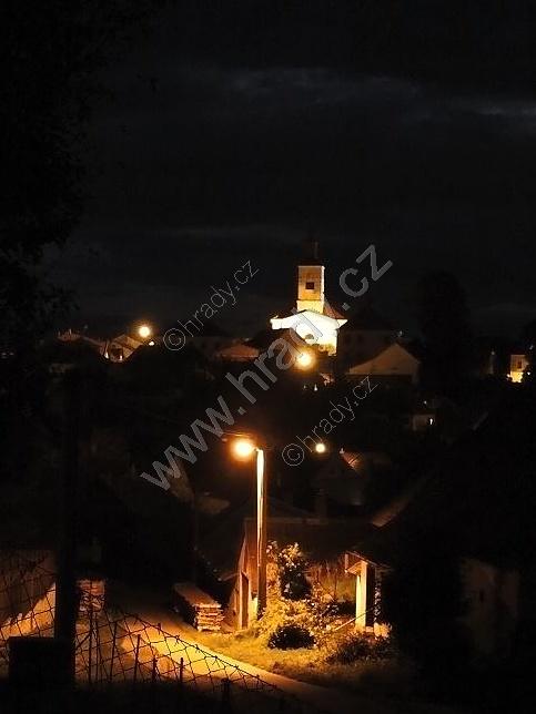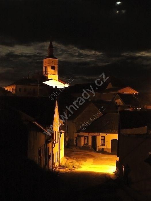 noční Strmilov s dominantou kostela