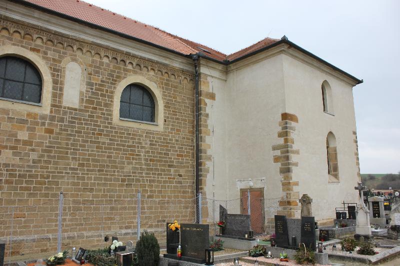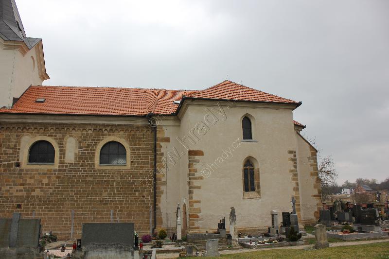 Románská loď z doby kolem r. 1200, kněžiště, boční kaple a věž z 2. pol.15. stol.