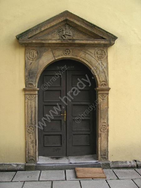 Vstup ke kostelu brankou v bývalé ohradní hřbitovní zdi.